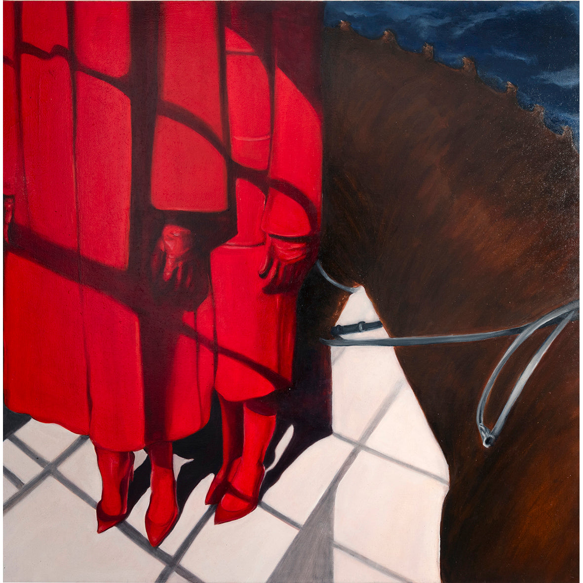 With a background in fashion and advertising, Alexandra Jule Cipriotti draws on portraiture to interrogate contemporary media imagery. Her work reframes stereotypical representations of women, amplifying the cinematic and psychological potential of paint to construct new interpretations of femininity. Through the manipulation and recontextualization of fashion and commercial imagery, Cipriotti foregrounds sartorial forms and gesture as sites of sociological inquiry. Fragmented and obscured, her figures deny voyeuristic intimacy while decoding advertising tropes and the dominant patriarchal structures that inform them. Heightening the narrative and psychological charge of mass-mediated imagery, her creative process becomes an investigation, forging contemplative spaces to reconsider how visual narratives shape perceptions of femininity.
