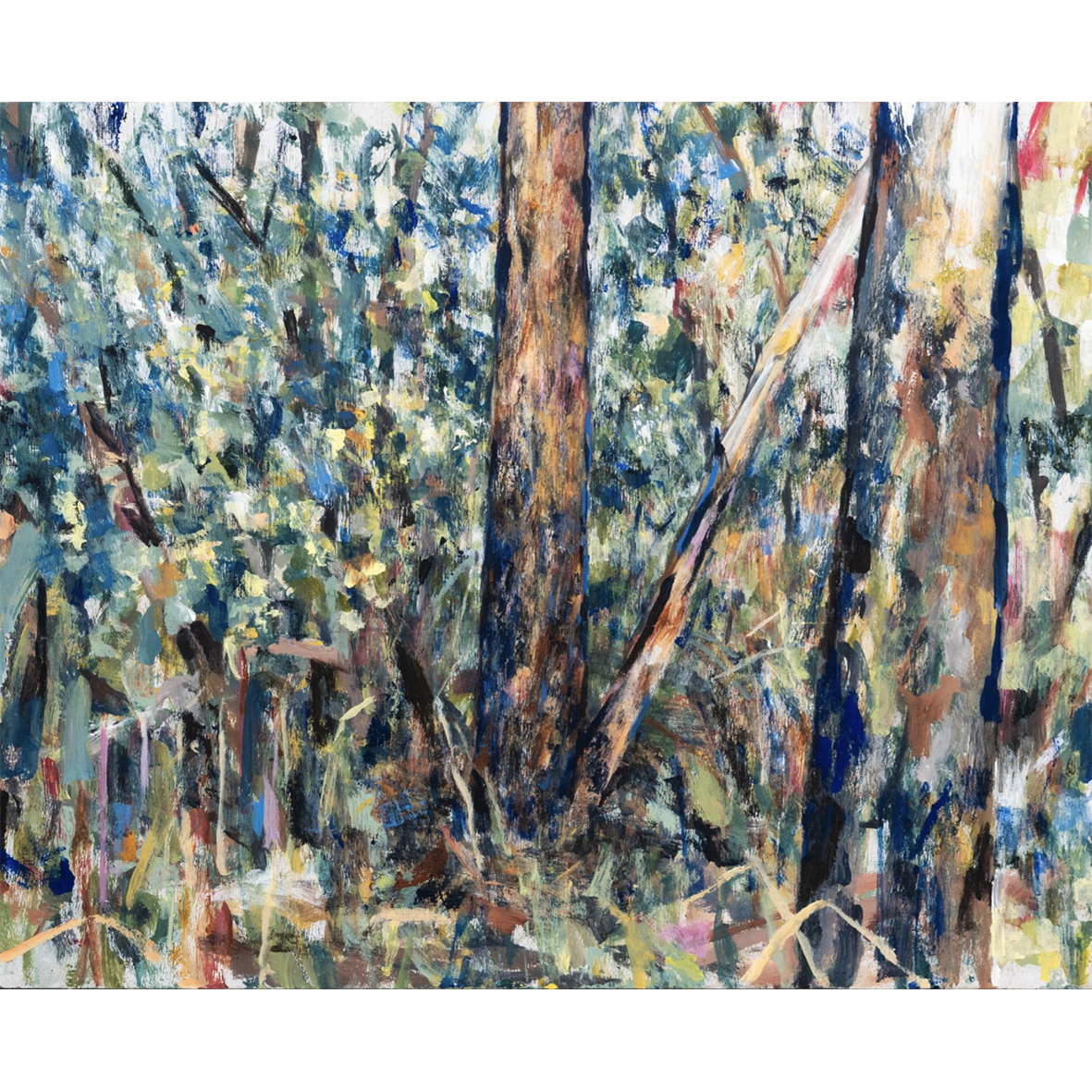 Elena Larkin (b. 1992) is an artist originally from Bundjalung land (rural NSW). Her practice explores notions of care and the ways in which immersive experiences of painting en plein air can foster interspecies kinship. Troubled by how capitalist systems distort our relationships with the more-than-human world, Elena is interested in how creative processes might help us reconnect and reimagine our relationships with the earth and nonhumans, while offering a cathartic space for ecological grief.