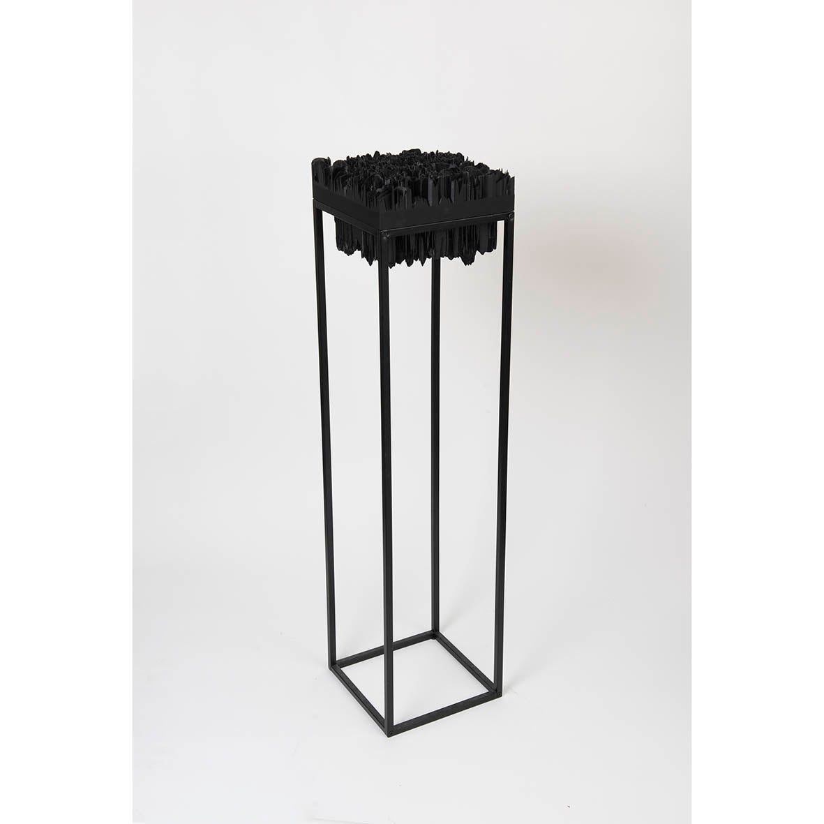 Artifically Liquified 3D model of a hallucinated garden bed, printed with black PLA fillament, black Aluminium plinth