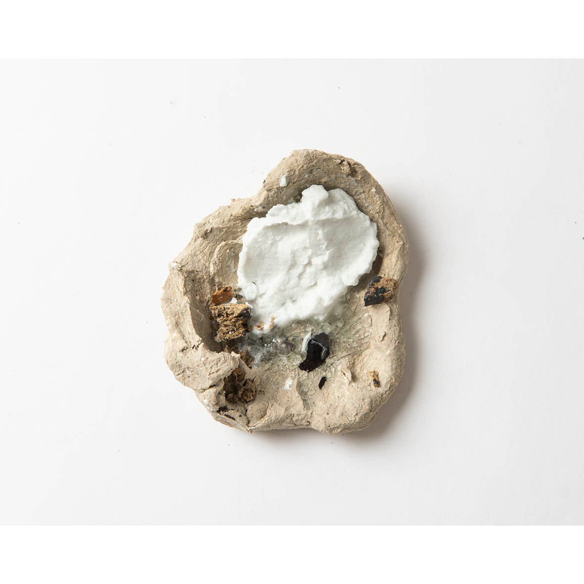 stoneware ceramics: ball clay, silica, ash, potash feldspar, eggshells, glass